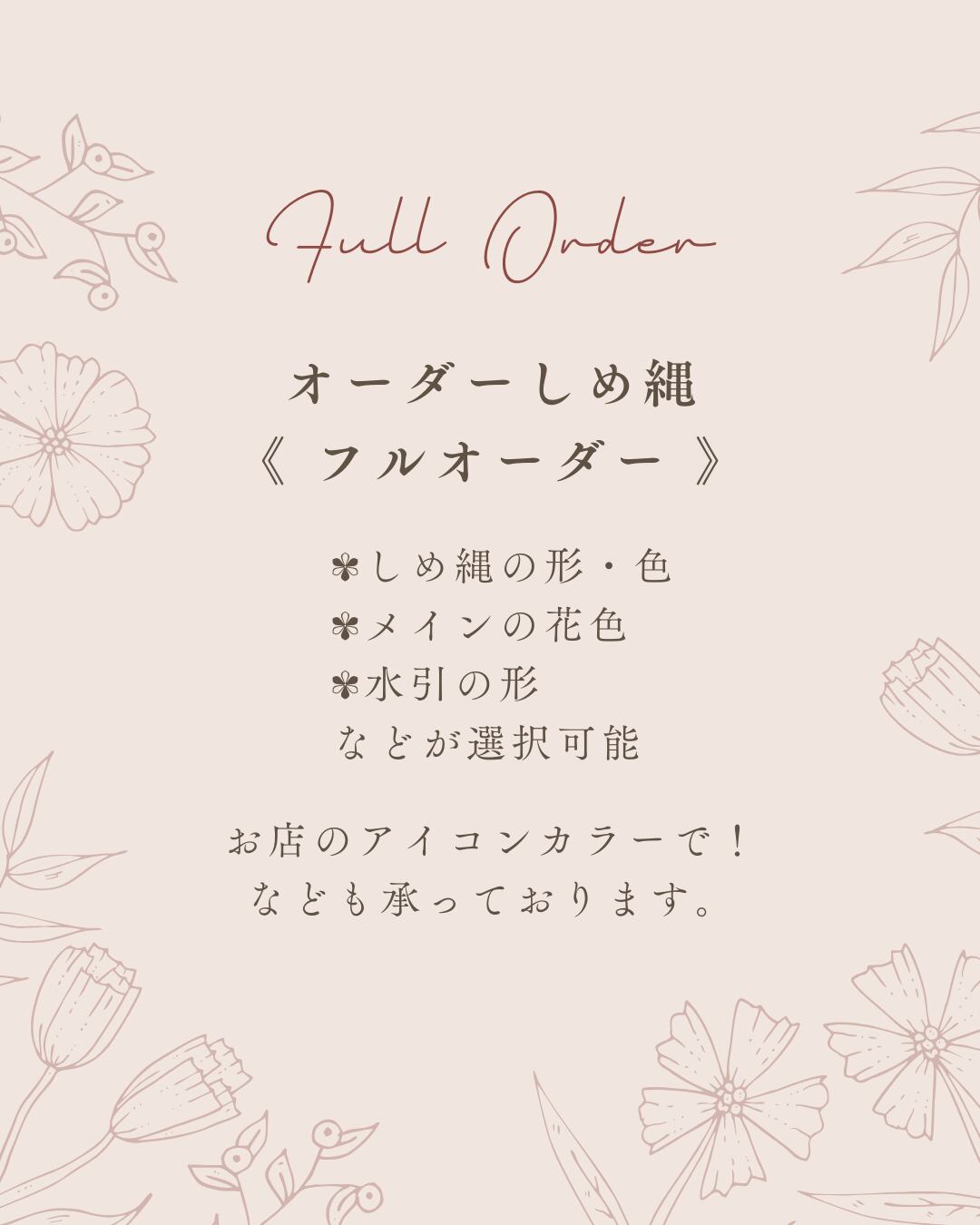 ●メインの花、しめ縄の色、水引の形
